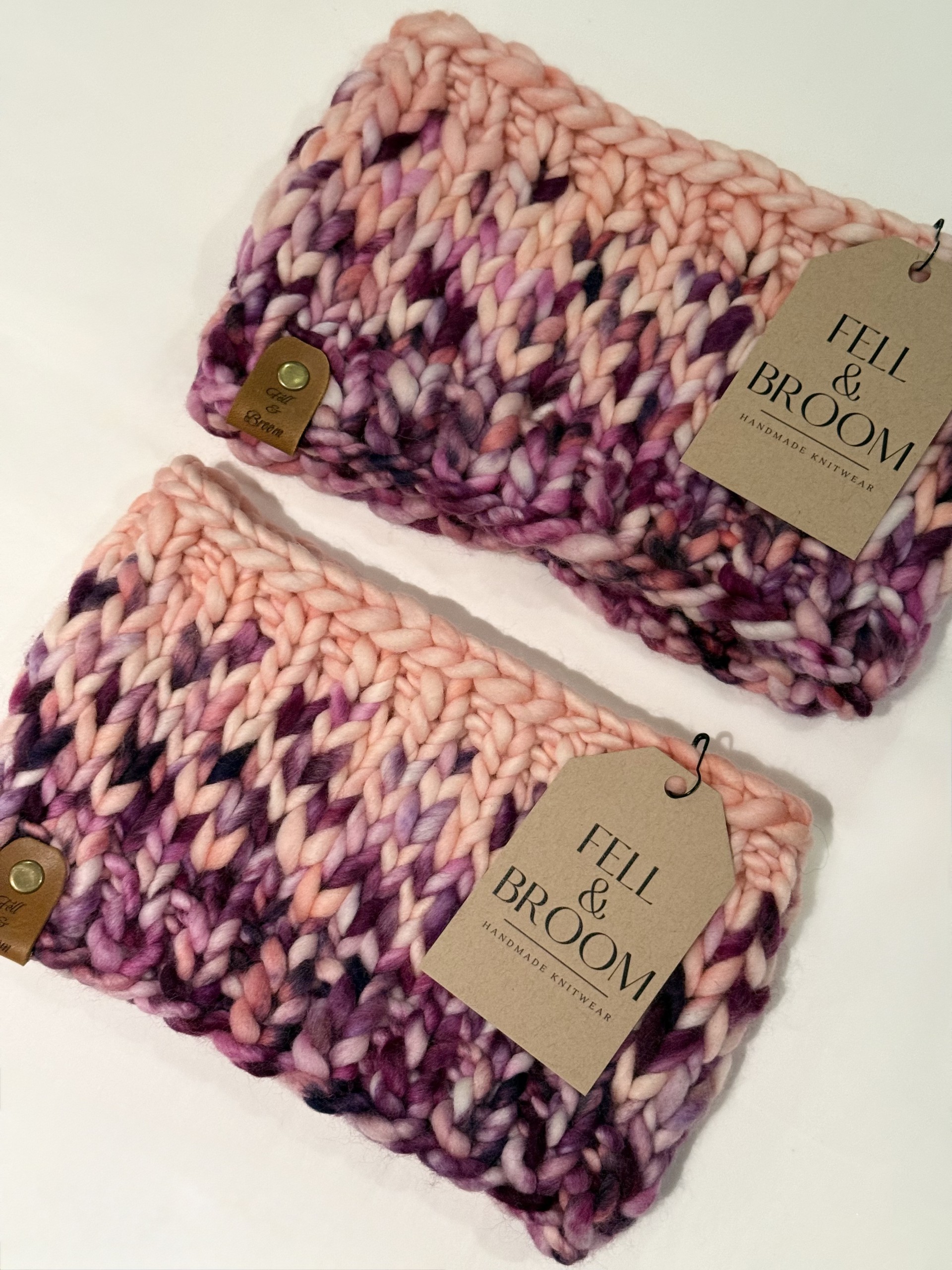 This headband is a hand-knit 100% merino wool headband – perfect for chilly winter walks and exploring the countryside. We use only the highest quality, ethically-sourced yarn to keep you warm. This yarn is hand dyed for a truly stunning blend of tones and colours, so all headbands are made from the same colour-ways, each headband is truly unique and no two headbands will have the same pattern/blend of colours.